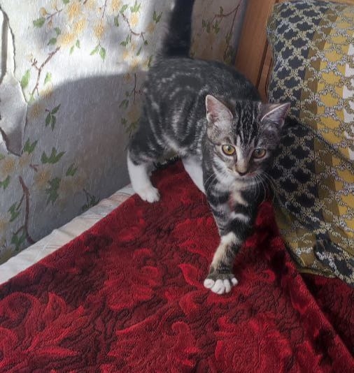 Маня — игривая, самодостаточная и самостоятельная кошечка. Если Вам некогда ее развлекать, не переживайте — Маня сама себя займет. Чистоплотная, ласковая, игривая. Здорова и имеет уникальный серо-черный окрас с полосками и пятнами.